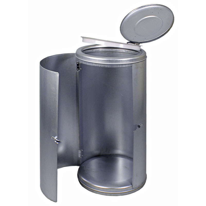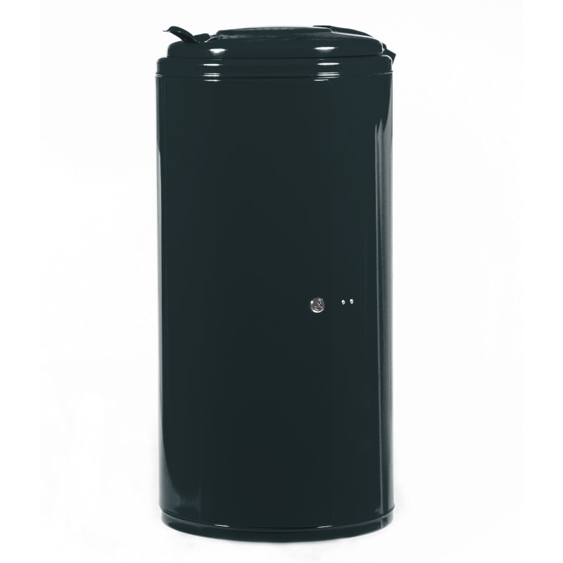Dank der großen Einflügeltür an der Vorderseite tauschen Sie Müllsäcke im Handumdrehen aus. Ein verzinkter Klemmring sorgt dafür, dass die Müllsäcke nicht abrutschen. Der Abfallsammler Typ 8040 ist mit einem Dreikantverschluss oder alternativ mit Spannverschluss erhältlich.