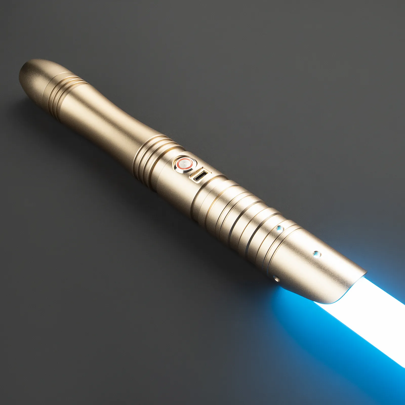 The Apprentice Lightsaber is a sleek and balanced design, crafted for those taking their first steps into saber combat. With its smooth contours and ergonomic grip, this saber is designed for comfort and precision, allowing for swift strikes and controlled movements. The streamlined hilt provides a refined aesthetic without unnecessary embellishments, making it an excellent choice for both beginners and seasoned duelists looking for a straightforward yet effective weapon.