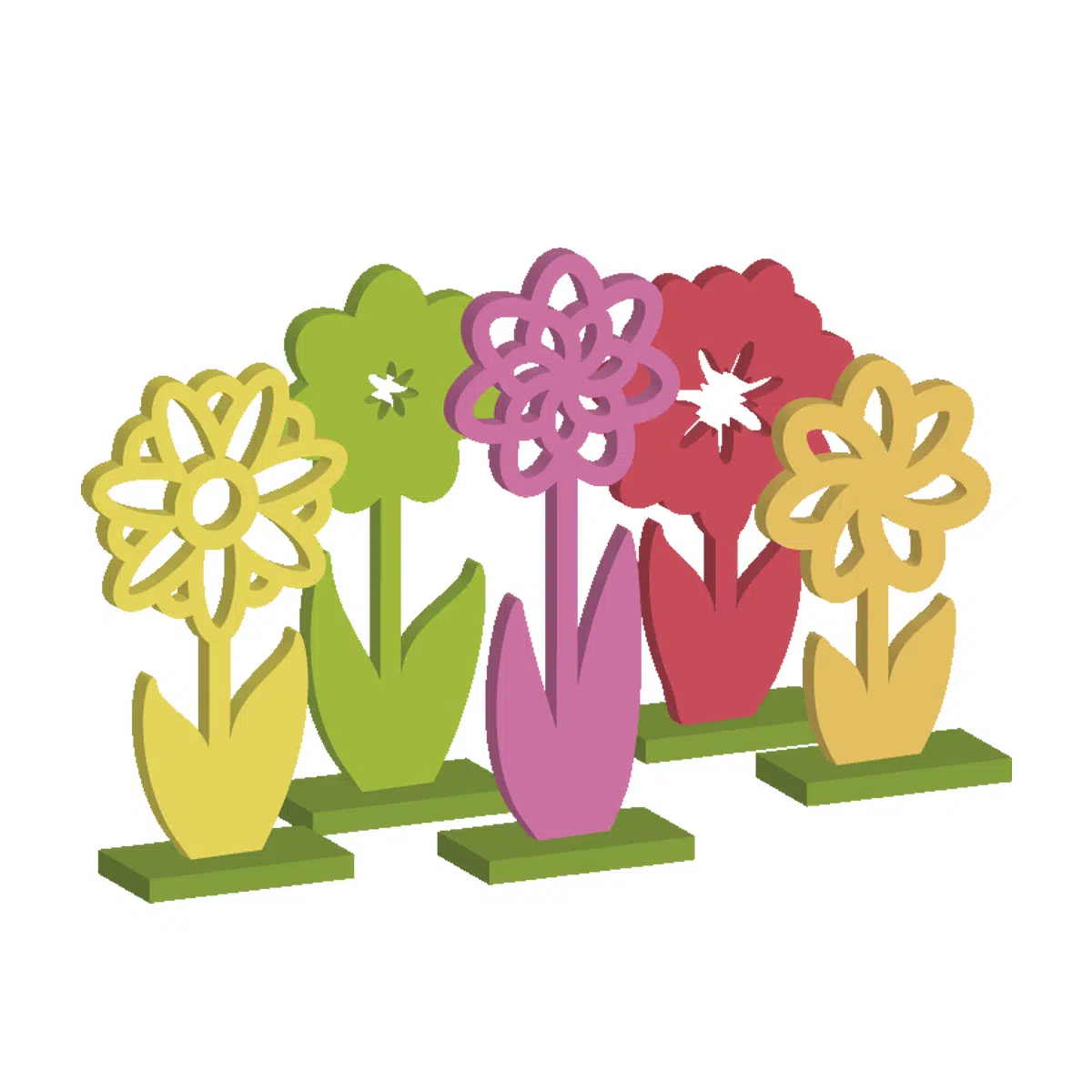 Mit der Laubsägevorlage Aufsteller BLUMENWIESE erhältst Du ein PDF mit der Sägevorlage sowie eine bebilderte Schritt-für-Schritt-Anleitung für dieses Projekt. Die Sägevorlage enthält fünf schöne Blumenmotive, die auf einer Leiste oder auf einem Einzelsockel positioniert werden können. Der farblichen Gestaltung sind hier keine Grenzen gesetzt. Verwende pastellige Kreidefarben, Naturfarben oder auch Acrylfarben, um die Blumen-Aufsteller nach Deinen Vorstellungen auszuarbeiten. Dieses Sägeprojekt ist nicht nur eine schöne Dekoration, sondern auch ein tolles selbstgemachtes Geschenk zum Geburtstag, Valentinstag oder Muttertag.