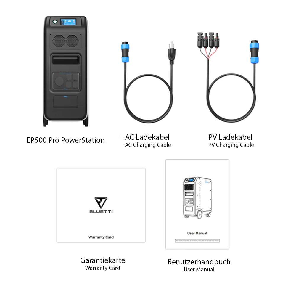 Mit der Bluetti EP500 Pro Powerstation (MPN 2-25-014710) präsentiert Bluetti eine der leistungsstärksten und zugleich vielseitigsten mobilen Powerstations in ihrem Sortiment. Mit seinen zahlreichen Anschluss- und Auflademöglichkeiten ist dieses Kraftwerk ein vielseitig einsetzbarer Allrounder für zu Hause, im Ferienhaus oder als Backup bei Stromausfall.