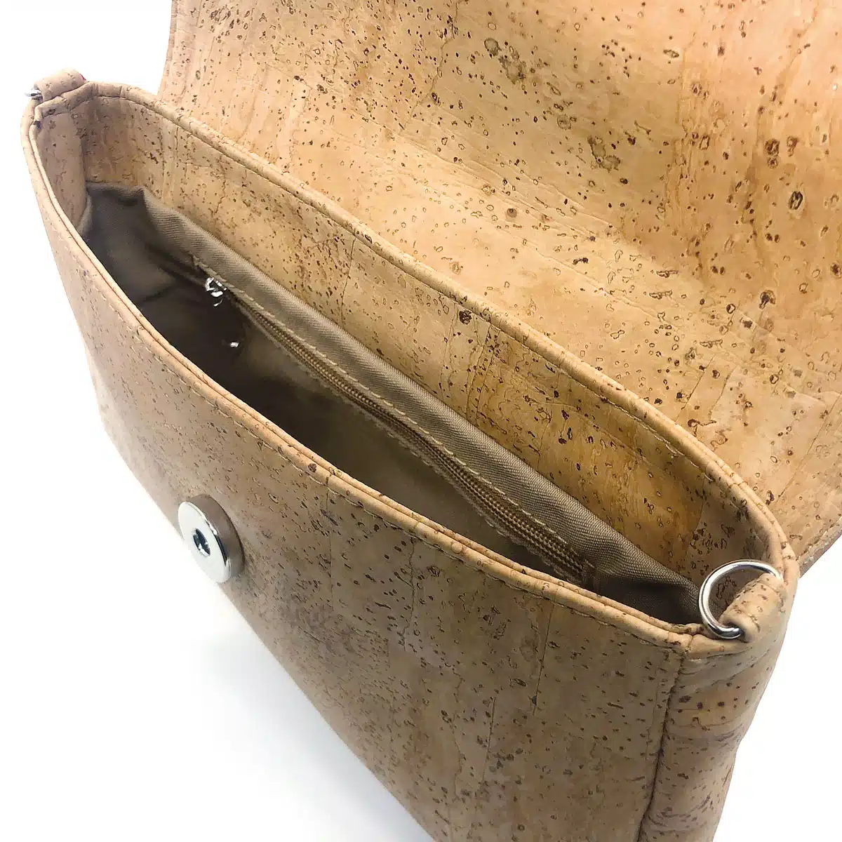Crossbody Tasche «Nature Flap» aus Kork von Artelusa. Eine nachhaltige Kork-Umhängetasche mit naturfarbener Klappe sowie Magnetverschluss.
