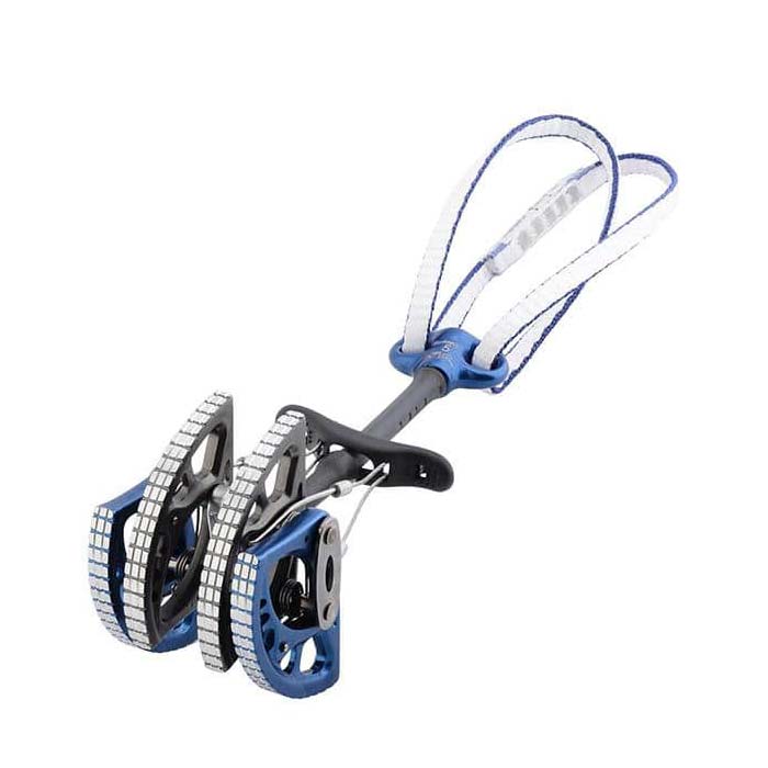 Somit braucht man anstatt einer zusätzlichen Expressschlinge nur einen kleinen Schnappkarabiner. Das bringt zum einen eine deutliche Gewichtsersparnis. Und zum anderen ein wesentlich einfacheres Handling.