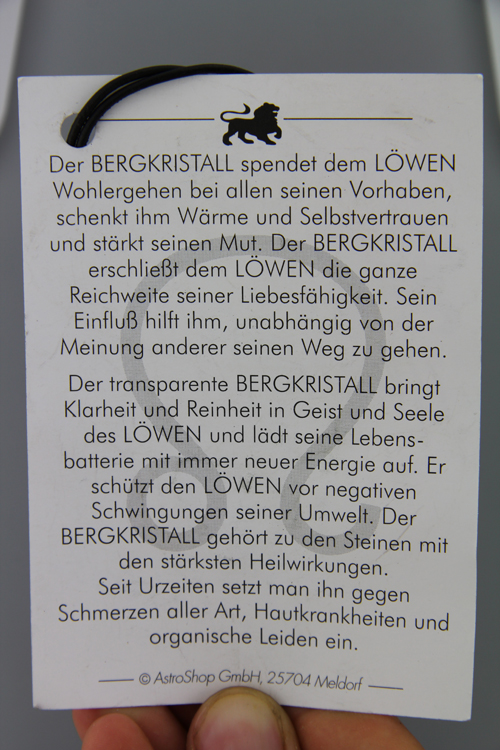 Edelstein Löwe: Der Bergkristall spendet dem Löwen Wohlergehen bei allen seinen Vorhaben, schenkt im Wärme und (….) Mehr Text siehe Foto.