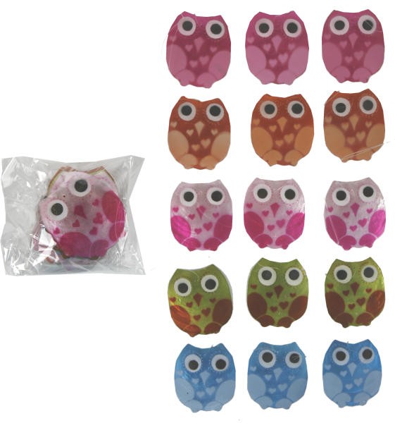 - 14 Eulen in 5 verschieden Farben: 2 x Petrol, 3 x Oliv, 6 x Fuchsia, 3 x Orange