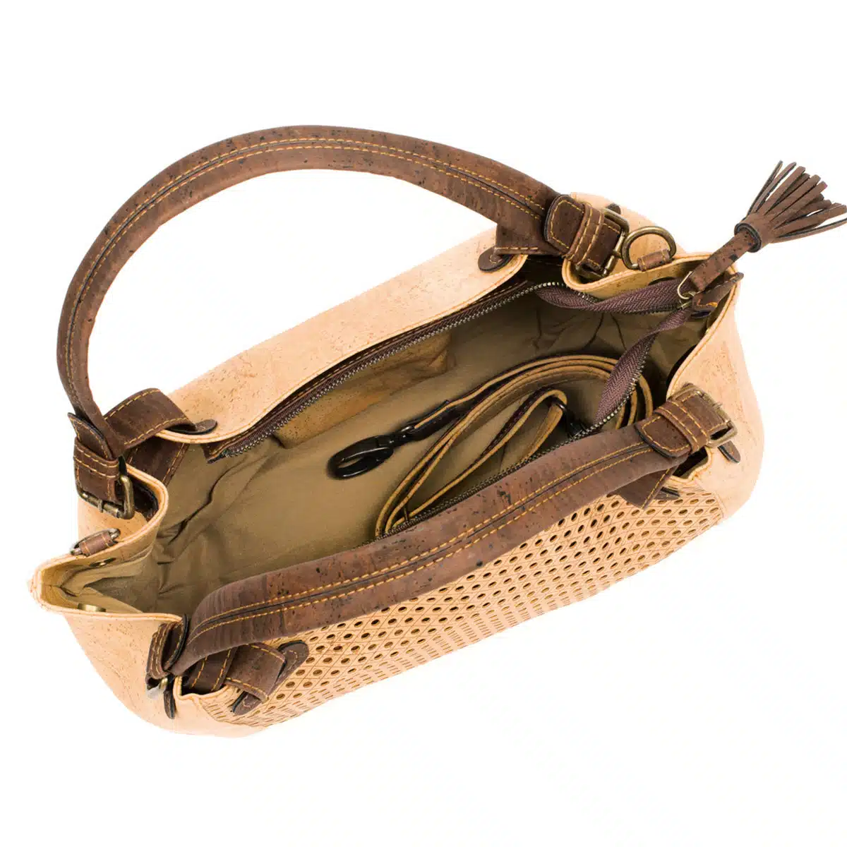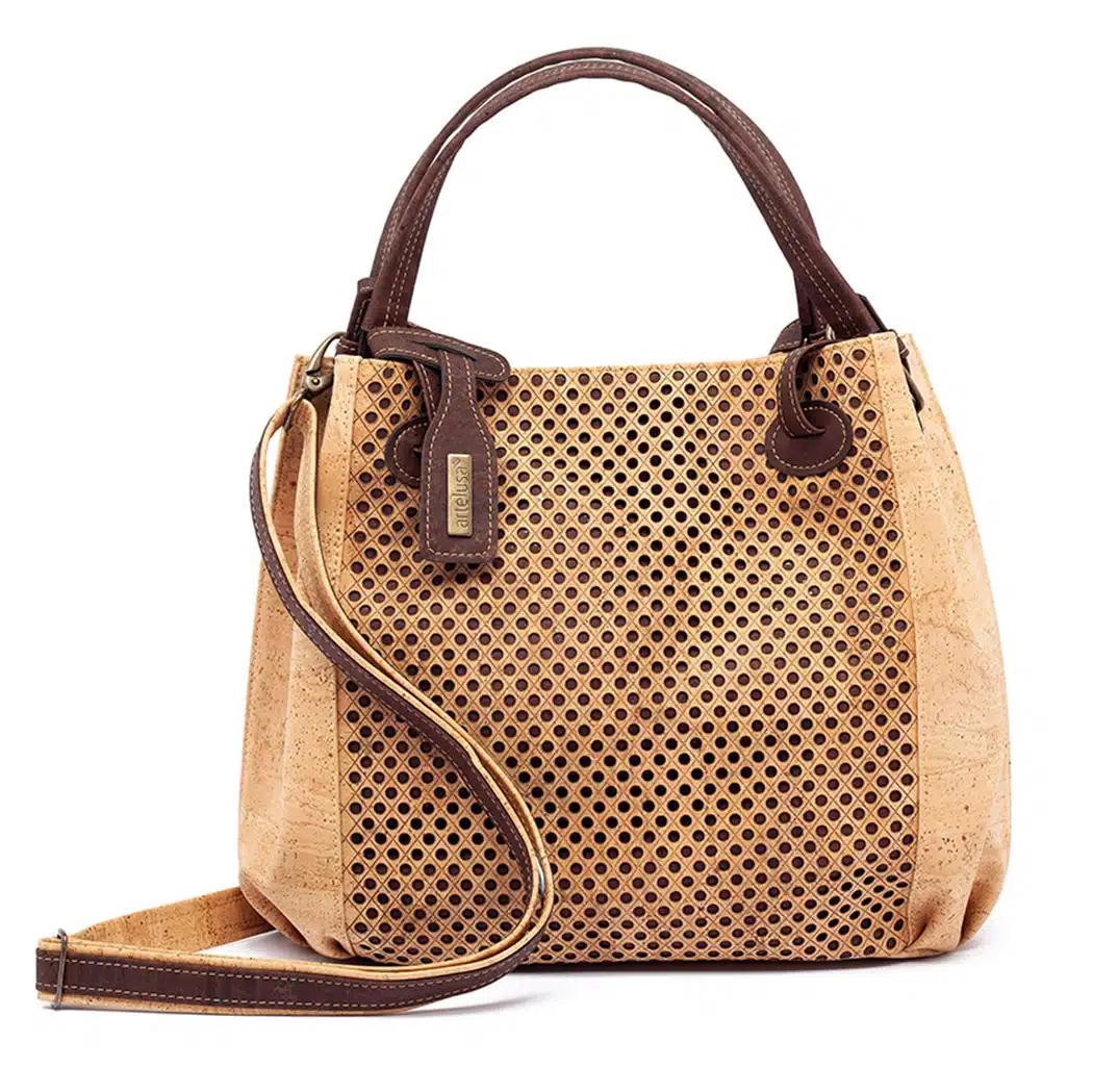Damentasche aus Kork «Ponto L» mit Lasercut sowie abnehmbarem Trageriemen.