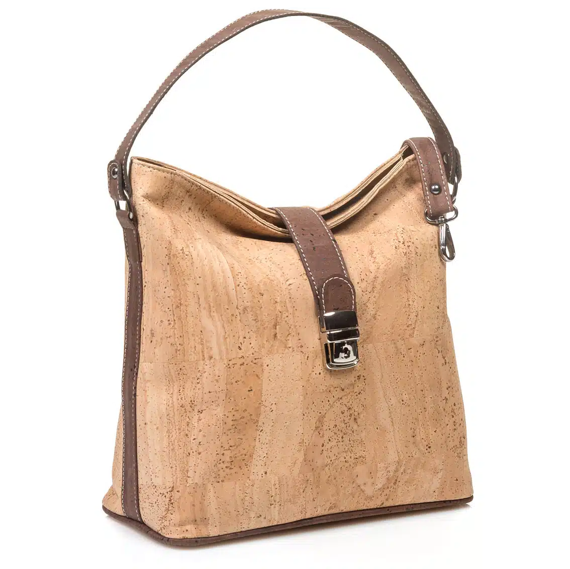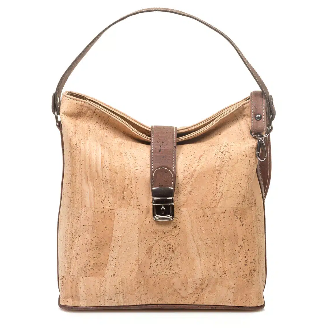 Handtasche «Style» aus Kork von Marla Pais mit abnehmbarem Trageriemen. Hauptfach mit Reissverschluss sowie Klickverschluss für mehr Sicherheit.