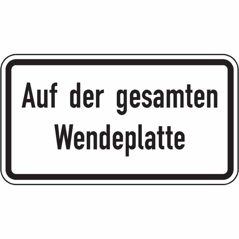 Bei dem Hinweisschild "Auf der gesamten Wendeplatte" können Sie zwischen unterschiedlichen Größen wählen die sich an die vor Ort gefahrenen Geschwindigkeiten anpassen sollten: