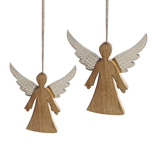 Casablanca Design Hänger “Engel Audra”, Mangoholz / Alu – naturbelassen, Flügel in Alu gehämmert