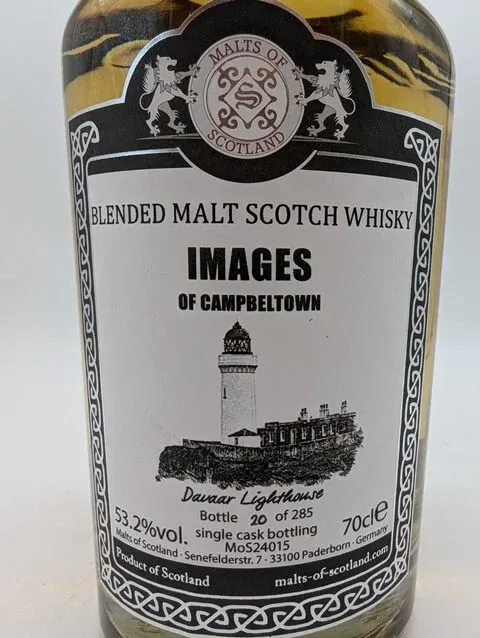 Bei dieser Abfüllung handelt es sich um einen Campbeltwon Blended Malt aus der Images Serie von Malts of Scotland. Das Fass ergab 285 Flaschen.