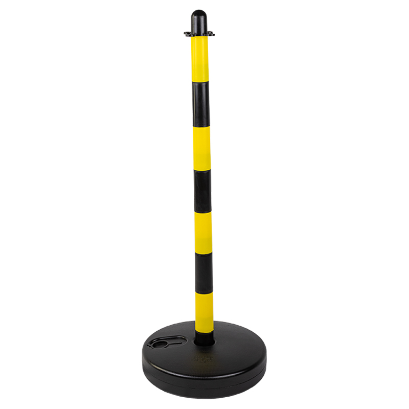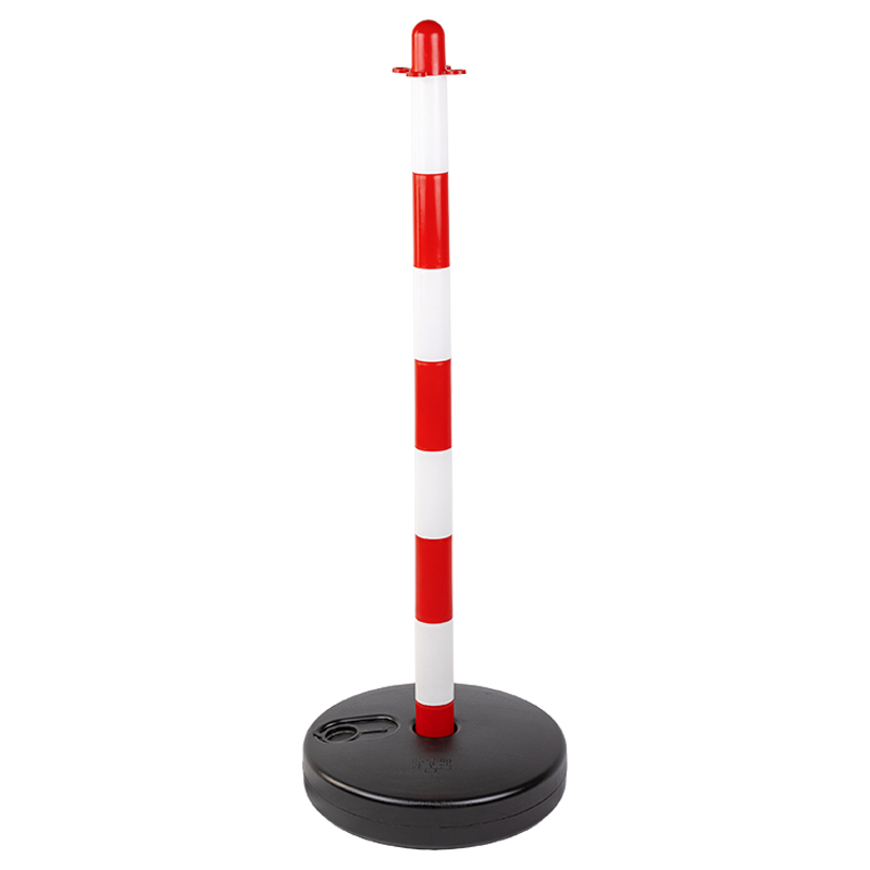 Mit diesem Kettenpfosten aus Kunststoff mit befüllbarem Fuß verbinden Sie hohe Mobilität mit erhöhter Standfestigkeit. Der Fuß des Kettenständers in achteckiger Form sorgt für einen stabilen Stand. Sie können den Fuß selbst befüllen, um das Eigengewicht des ansonsten mit 2 kg sehr leichten Kettenpfostens zu erhöhen.