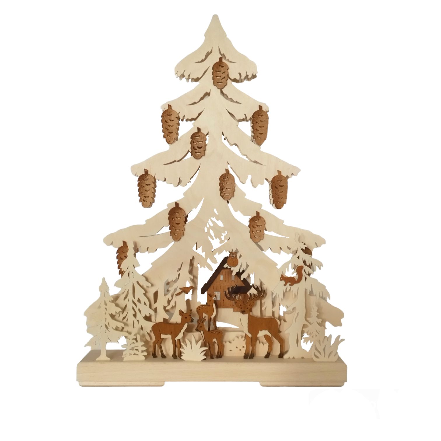 Diese hübsche Lichtertanne Waldtiere auf Lichtung wird von der Firma Ratags in liebevoller sowie traditioneller Handarbeit gefertigt.