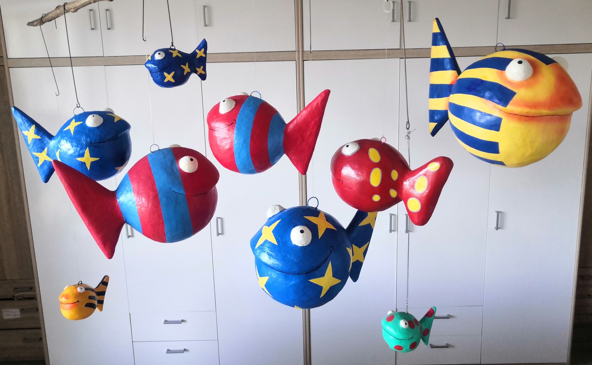 Looky Pappmaché Fisch handbemalt 17-40 cm zum Aufhängen