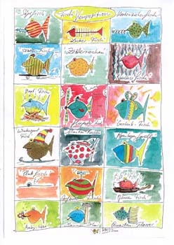 Dieser süße Kugelfisch “Looky” stammt aus der Malerei von Klaus Michael Schade aus Oldenburg. U.a. findet man Ihn und seine Freunde in dem Aquarell, Tusche Bild “Fish -Mix”,  “Grosses Treffen”  “Traumwelt” und weitere Bilder aus dem Jahr 2000