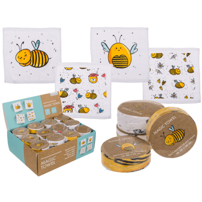 Das magische Handtuch Biene sieht auf den ersten Blick aus wie ein Würfel, doch lüftet diese kleine Überraschung erst bei Kontakt mit Wasser ihr wahres Aussehen. Auch als keines Kindergeburtstagsgeschenk ist dieses Magische Handtuch ein absoluter Hit und schont den Geldbeutel.
