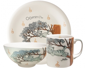 Yoga Katze Becher + Teller + Schale