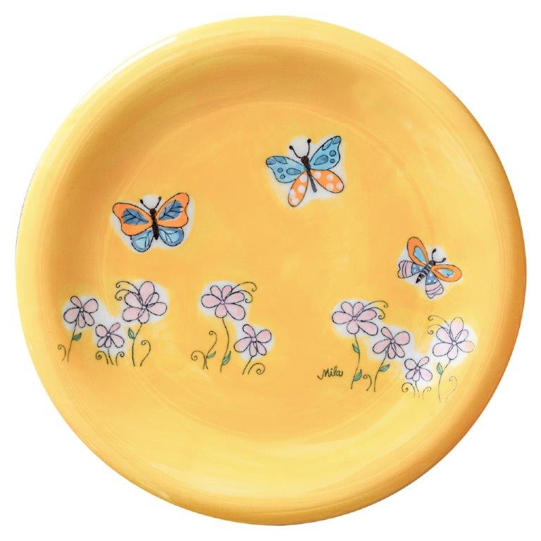 Der Mila Schmetterlinge Teller verbreitet Freude mit seinen warmen Farben.
