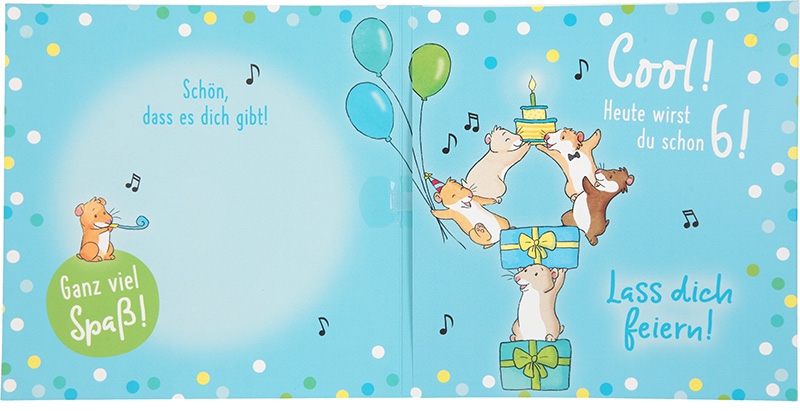 Feiern Sie jeden Geburtstag mit einer ganz besonderen Karte! Die liebevoll gestalteten Zahlenkarten mit Musik sind mehr als nur eine Glückwunschkarte – sie sind eine unvergessliche Erinnerung an einen besonderen Tag. Die Musikkarte 6. Geburtstag blaugrau ist perfekt, um jedem Geburtstagskind ein Lächeln ins Gesicht zu zaubern.