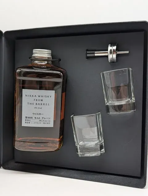 Dieses Set enthält neben der 0,5L Flasche Nikka from the Barrel noch 2 Glsäer und einen Ausgießer.