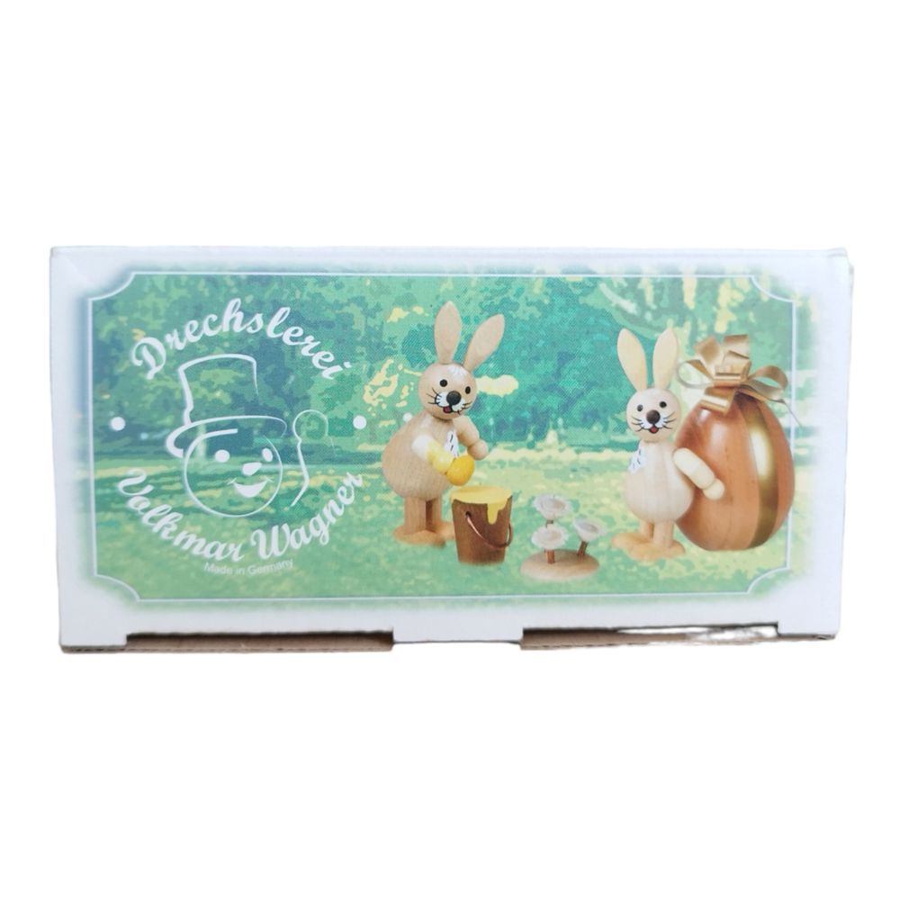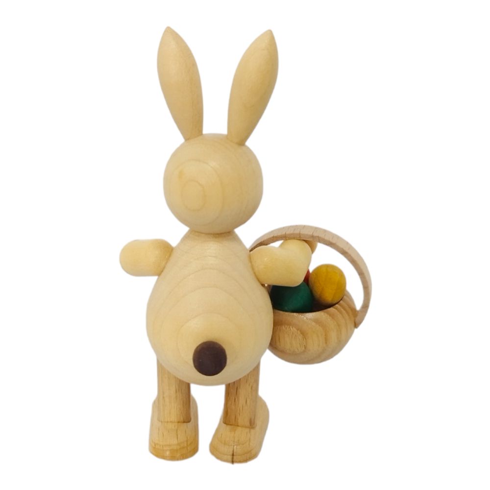 Neues aus dem Hasenland dieser Osterhase stehend mit Eierkörbchen wird in liebevoller sowie detailreicher Handarbeit von der Drechslerei Volkmar Wagner hergestellt.