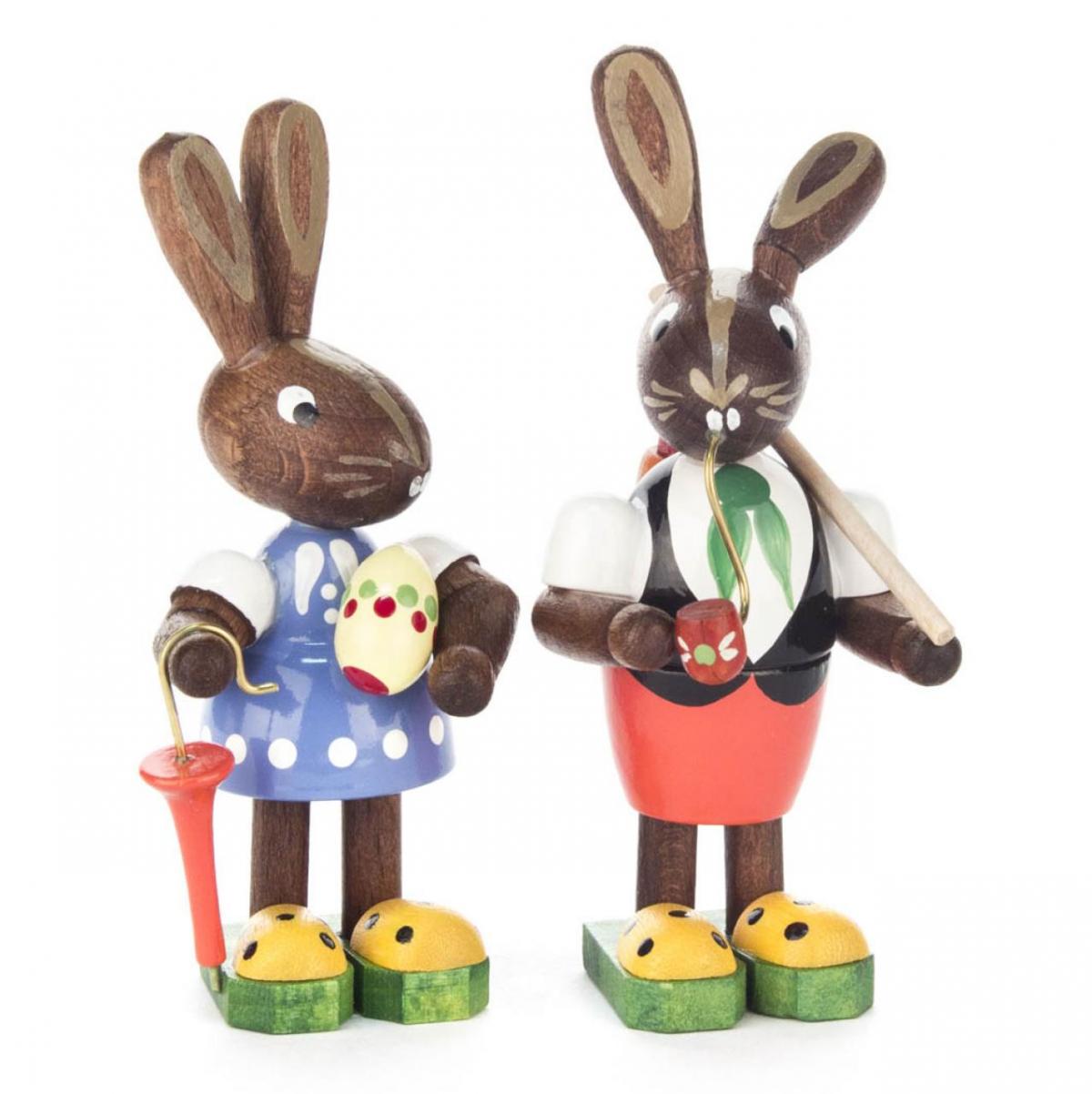 Das Osterhasenpaar mit Ei, Schirm und Pfeife bringt Ihnen doppelte Osterfreude.