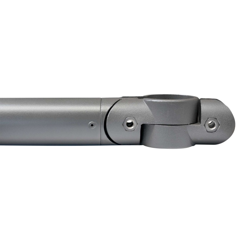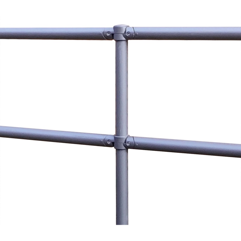 Jedes Querrohr wird mit zwei Verbindungsteilen geliefert – eins für Anfang bzw. Ende des Systemgeländers und eins als Anschlusspunkt für das nächste Querrohr. Die Verbindungsteile bestehen aus elektrisch leitendem Aluminium und sind mit Edelstahlschrauben ausgestattet.