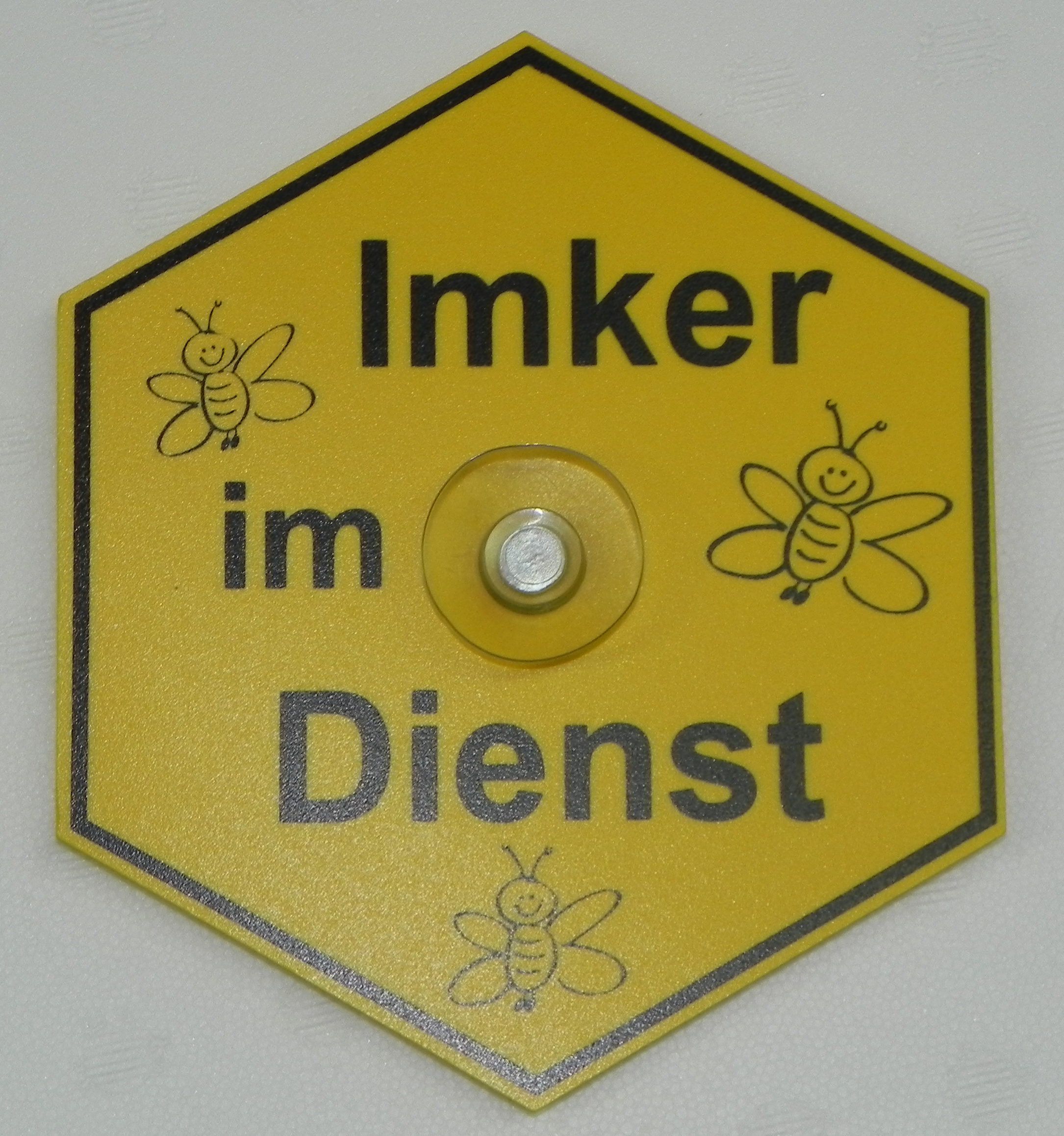 Saugnapfschild „Imker“ -Wabenform- gelb 15x13cm