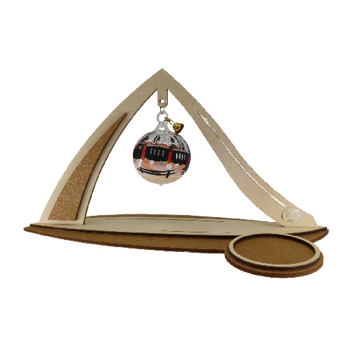 Die nach oben hin zulaufende dreieckige Form bildet den Rahmen für die mundgeblasene Glaskugel