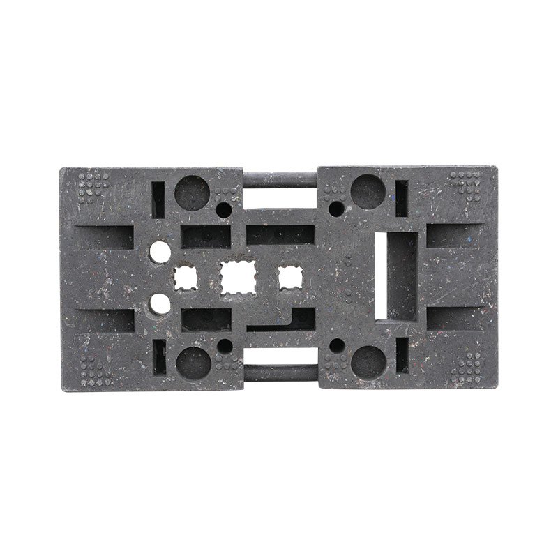 Die Fußplatte bietet 5 verschiedene Aufnahmen für Leitbaken, Schaftrohre und Absperrschrankengitter. Im einzelnen handelt es sich um eine Öffnung mit 60 x 60 mm, zwei Öffnungen mit 40 x 40 mm und zwei Öffnungen mit Ø 42 mm.