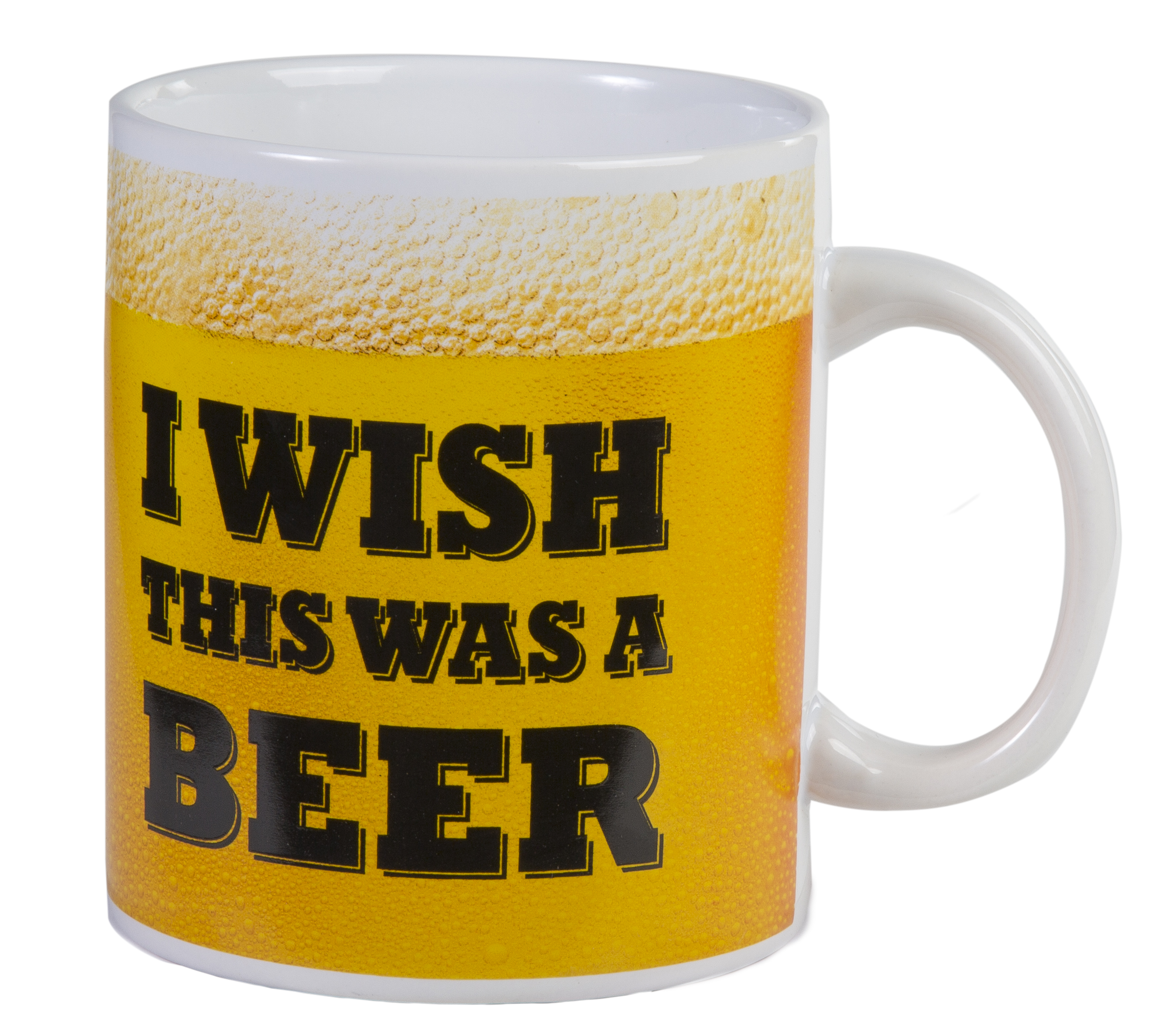 Für alle Bier-Fans ist der XL-Becher „Bier“ ein absolutes Must-have! Mit dem humorvollen Spruch „I wish this was beer“ und einem Design, das an ein Glas voll goldgelbem Gerstensaft erinnert, spricht dieser Becher direkt die Herzen der Biertrinker an. Egal, ob als Geschenk oder für den eigenen Gebrauch. Dieser Porzellanbecher sorgt für Lacher und gute Laune, wann immer er auf dem Tisch steht.
